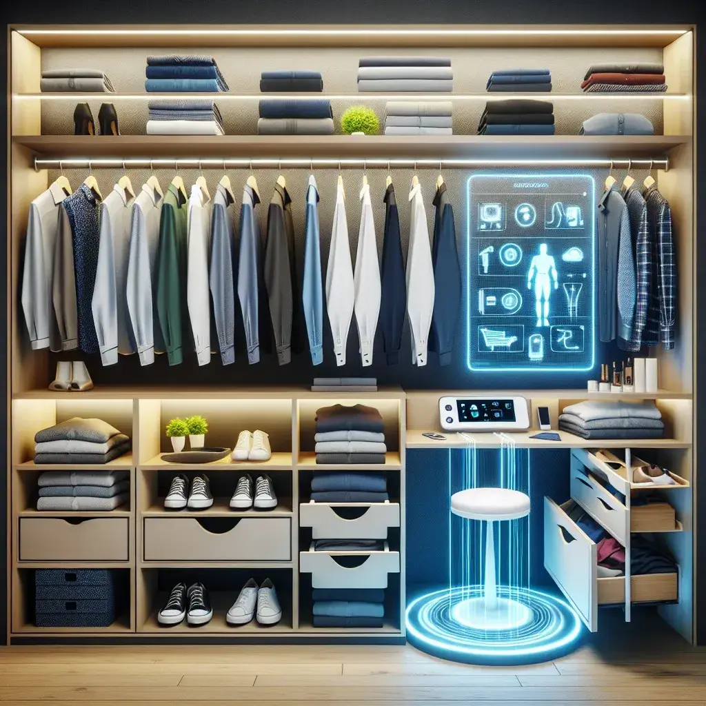 Consider investing in a smart closet system that uses technology to optimize space. These systems often include: